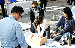 その他、「心肺蘇生・AED体験コーナー」をはじめ、JRや消防のこども制服を着用して記念撮影ができるコーナーなど、ご家族揃って楽しみながら「いのち」の大切さに触れていただきました。
